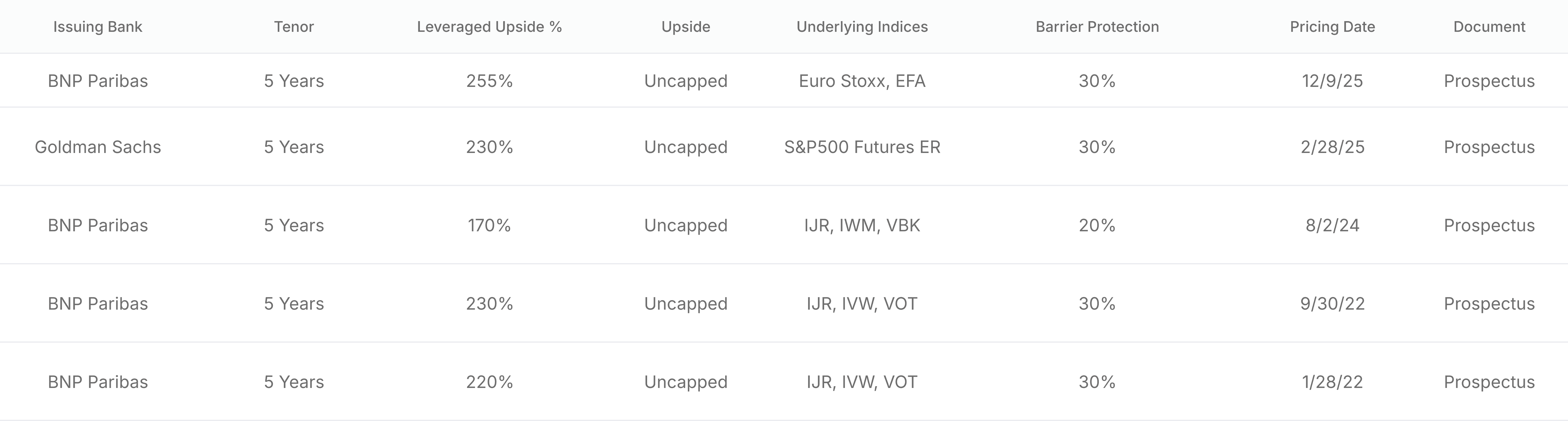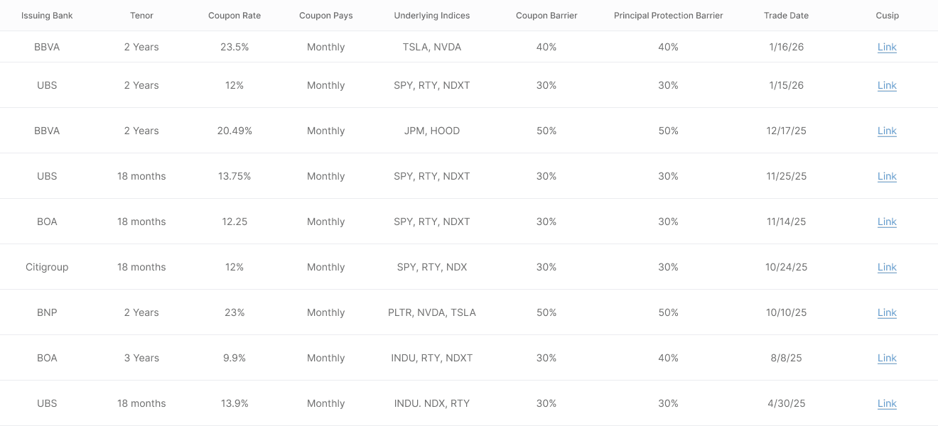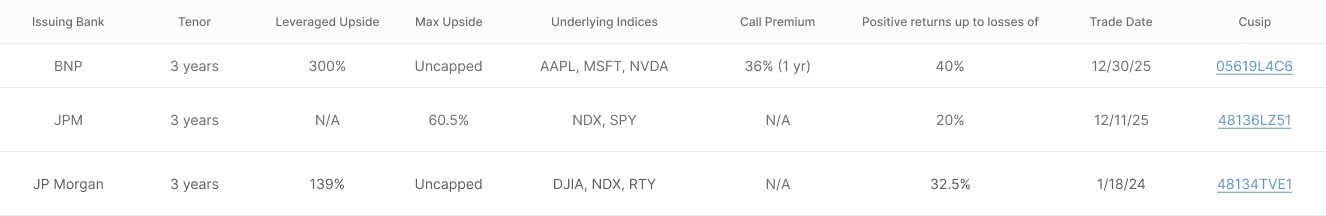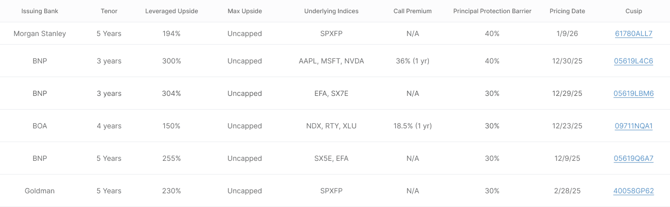 For full details on any structured note listed above, investors can review the official offering documents and term sheets filed with the SEC.
